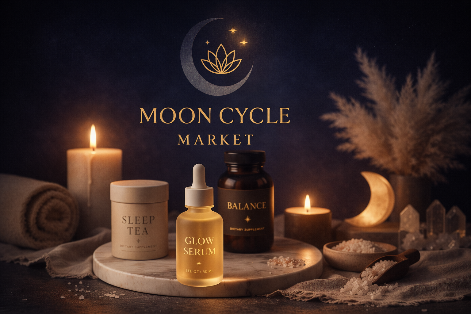 Moon Cycle Market is a curated women's wellness destination for every woman navigating the beautiful, complicated, sometimes chaotic journey of being in her body. Every product we carry — from small-batch botanical rituals to hormone-conscious skincare to the softest sweatshirt you'll ever own — was chosen because we'd use it ourselves. Because you deserve that level of intention.